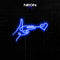 Matériaux utilisés : Cable LED Neon collé et sur une plaque de plexiglass transparent gravée, transformateur 12V.